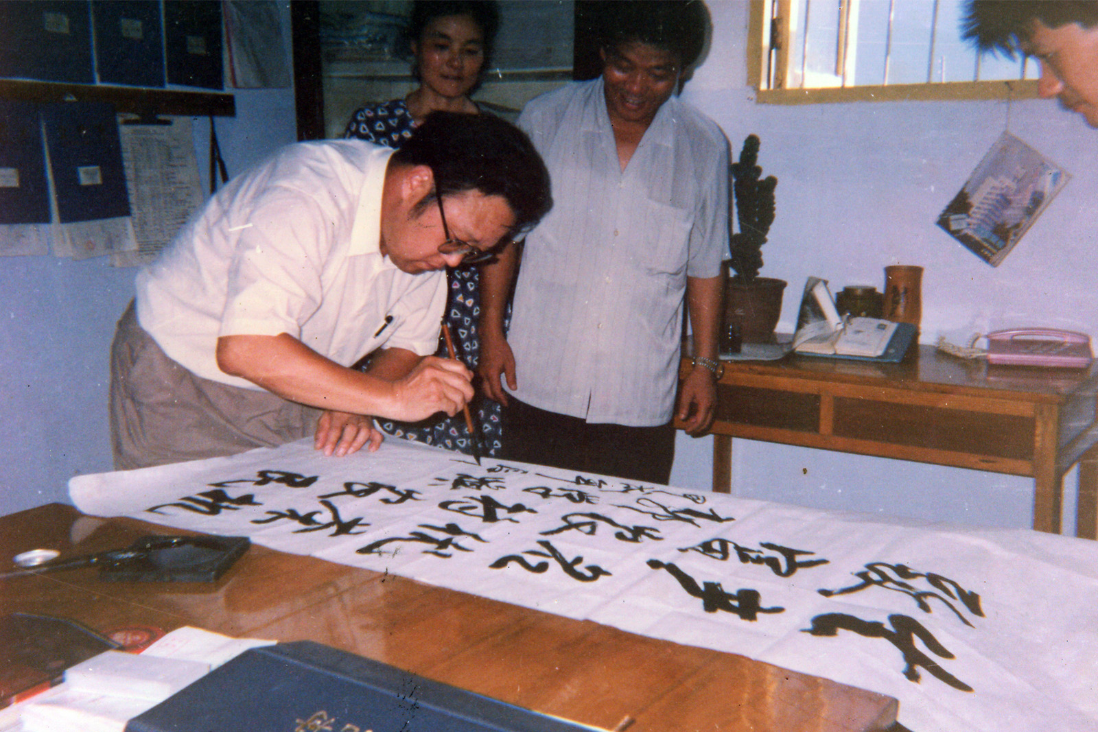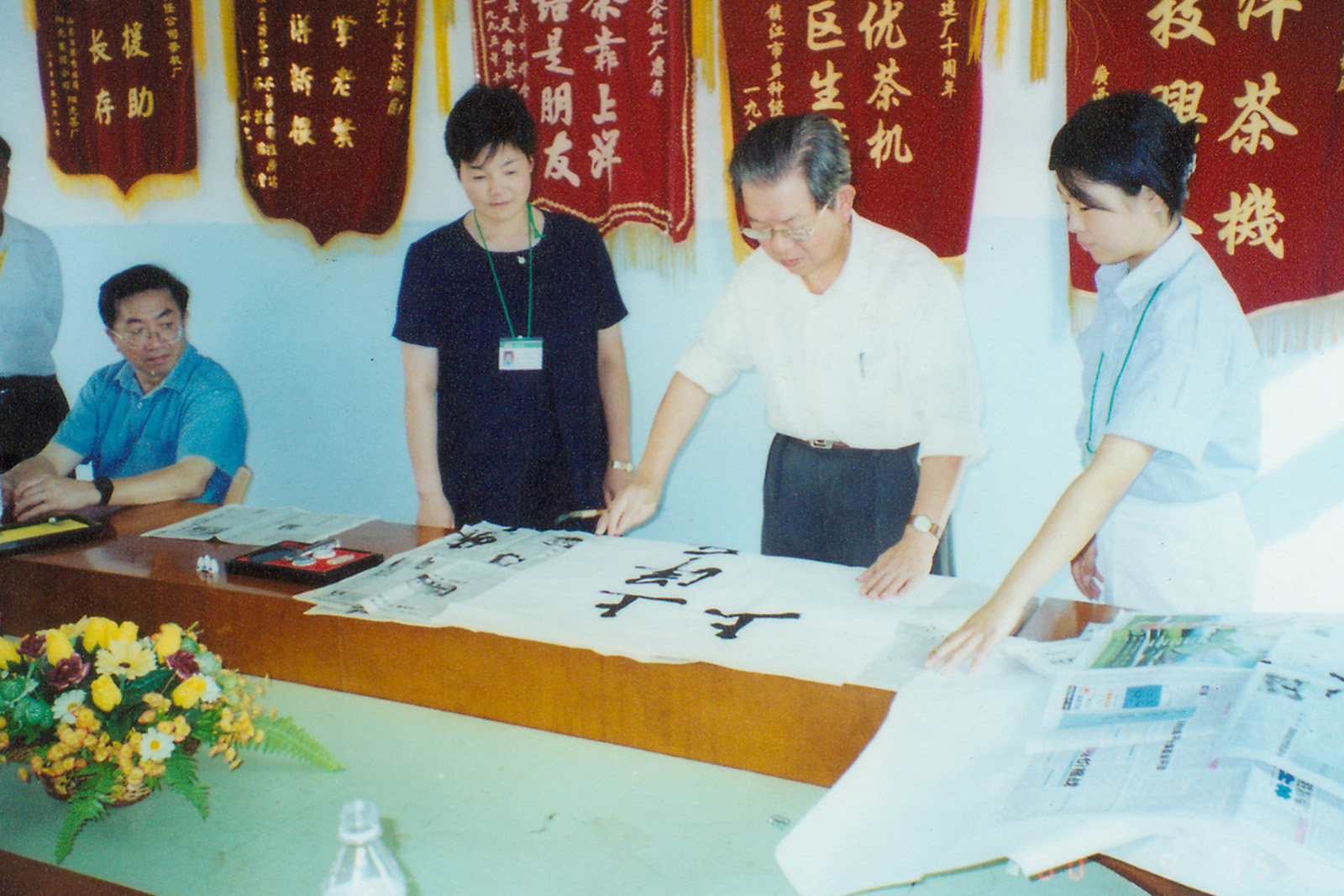 1990年, 衢州市委書記郭學煥來公司檢查指導工作。在聽取公司總經理程玉明對相關茶機產品的介紹后,潑墨提毫贊“生產名優茶機,致富農村農民”。