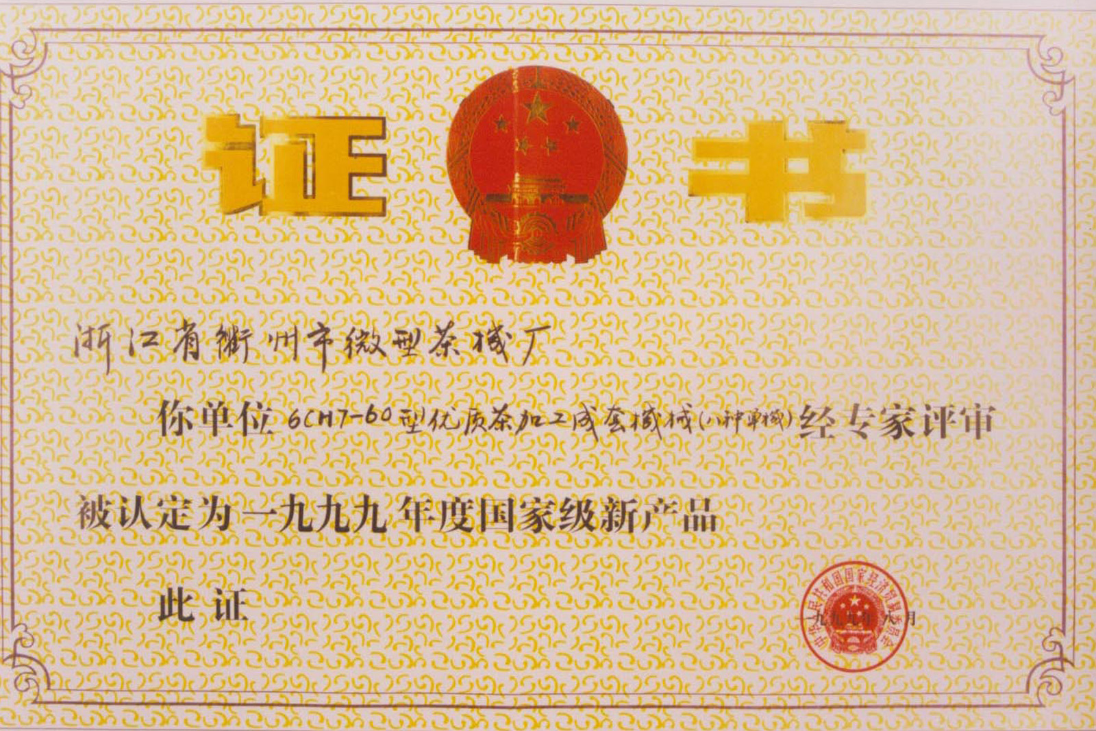 1992年10月,公司自主開發的“名優高檔茶加工成套機械”通過國家級新產品鑒定,促進與推動了我國茶葉加工向機械化、效率化、商品化方向發展。