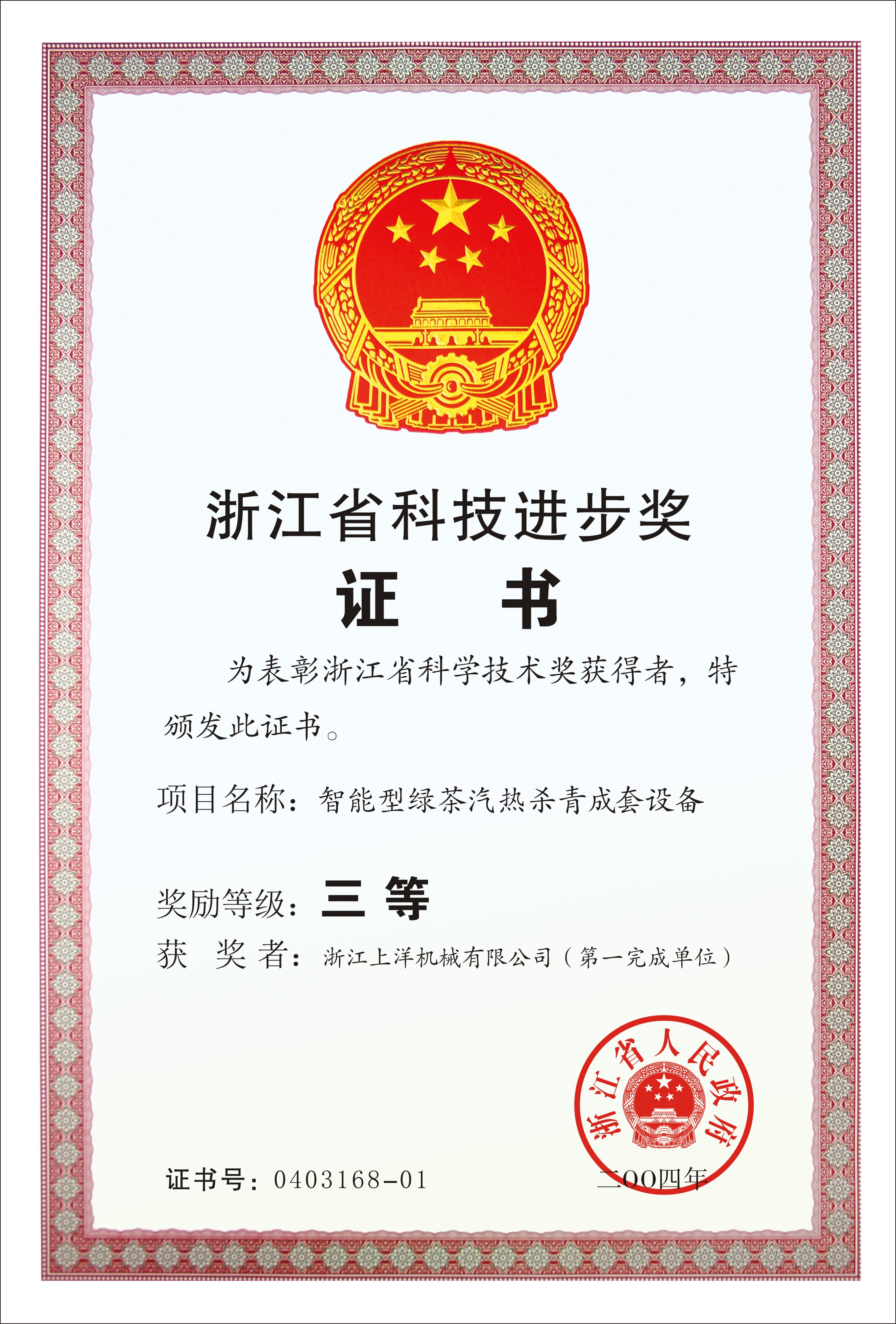 2004年浙江省科技進步三等獎