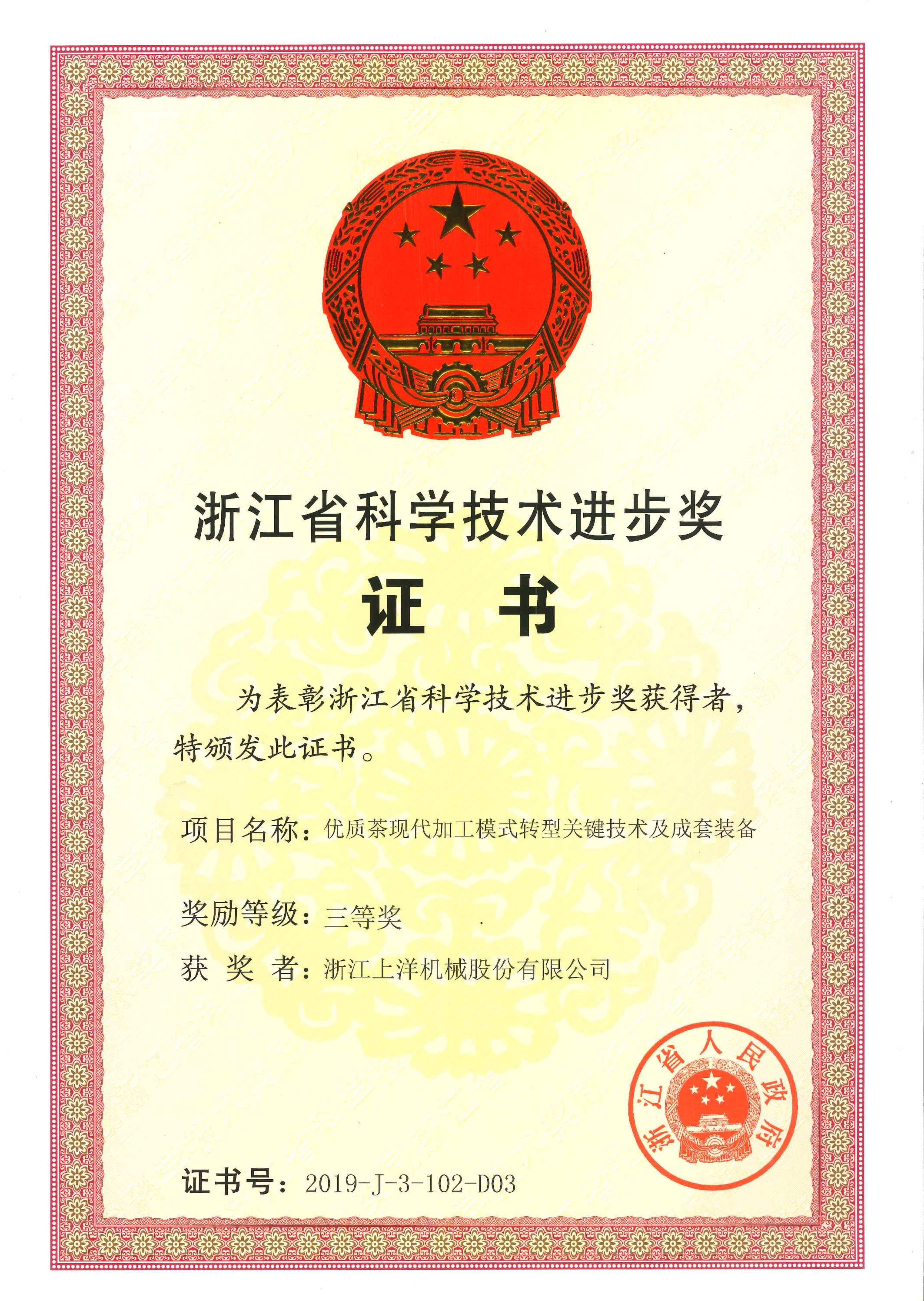2020年浙江省科技進步三等獎