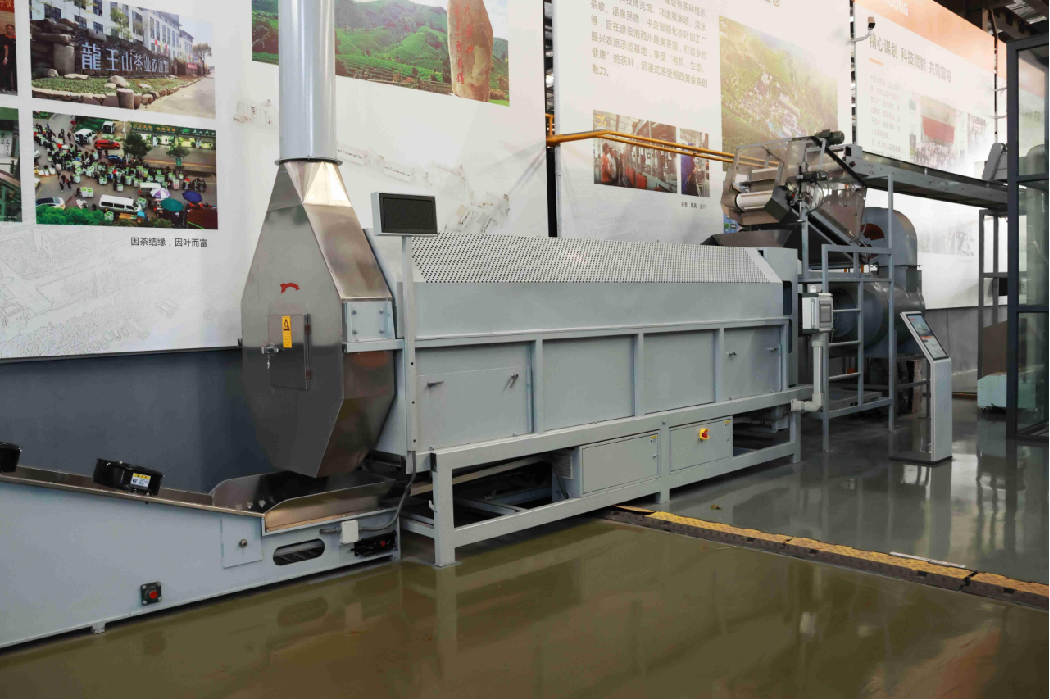 作業(yè)原理:機組運用自主發(fā)明的核心專利技術,遵循“透氣不悶”的制茶原理,茶葉在筒體內處于旋轉拋撒狀態(tài),熱風充分接觸,受熱均勻,水份散發(fā)快、透氣性好,可連續(xù)完成茶葉的初脫水工藝流程。